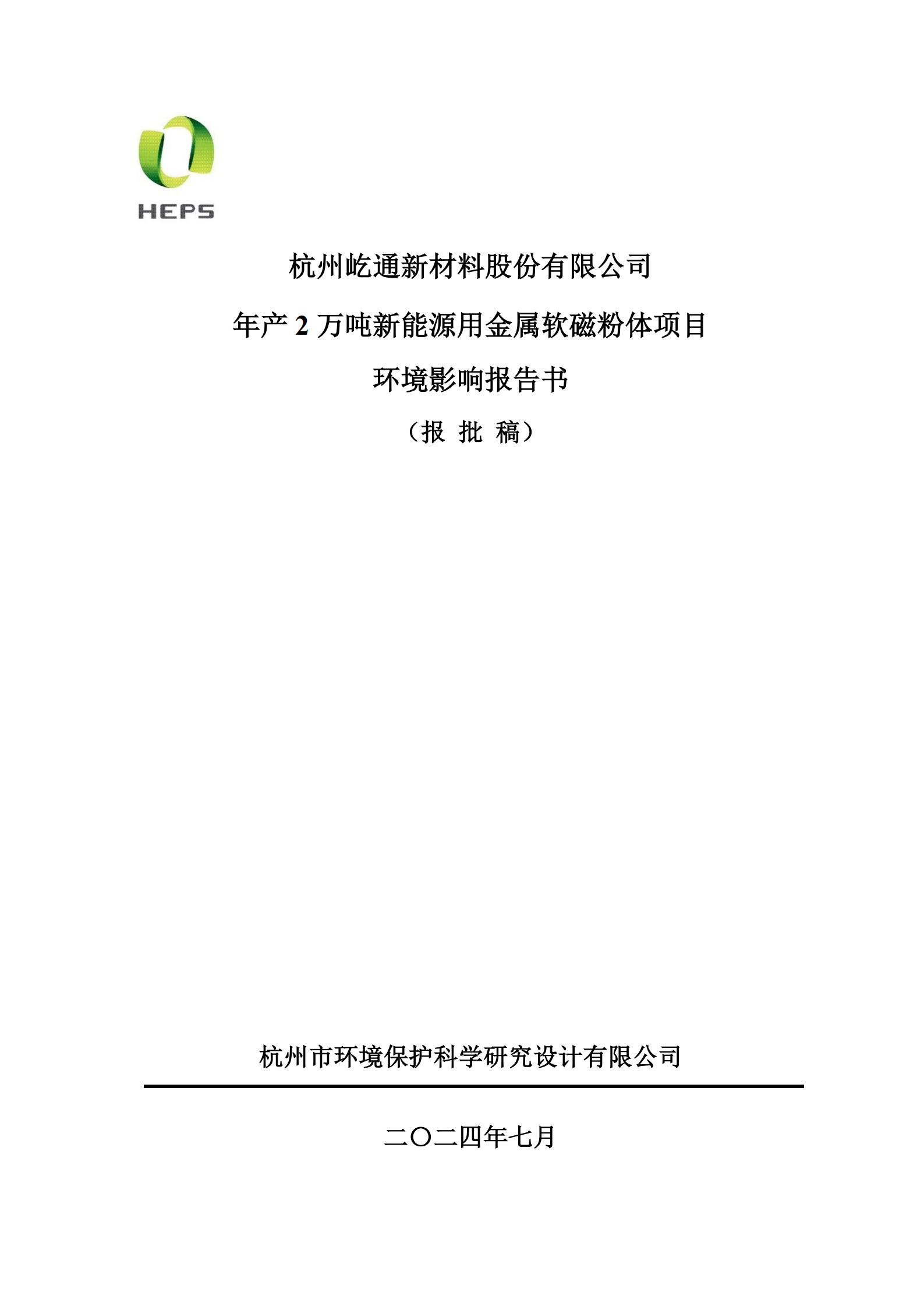 杭州屹通新材料股份有限公司年產2萬噸新能源用金屬軟磁粉體項目環境影響報告書2024/7/29閱讀數:4286